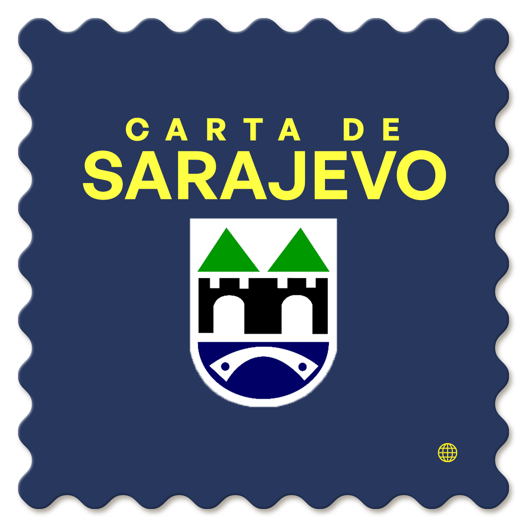 📜 1 carta de Sarajevo com 4 folhas ilustradas frente e verso, explorando a diversidade cultural, os ecos da guerra e a força de reconstrução que moldam a alma da capital bósnia.